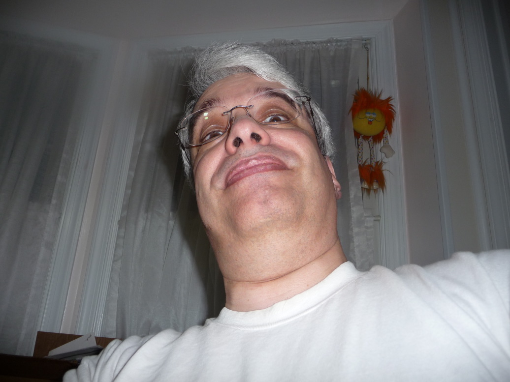 Meanwhile, we've achieved a new milestone compliments of the same daycare center. For years, I (and then my sister) would periodically realize there was a school assignment or project due tomorrow! and the whole family would have to scramble to get things done on time. Weeeelllll... what goes around, comes around -- the Pipsqueak's class was supposed to have a family photo for a "this is my family" project on Monday morning, so on Sunday evening I was at our folks' house, trying to convince a less-than-fully-cooperative three year old that she wanted to look at the camera, and smile to boot... 'Twas indeed a difficult proposition! Luckily my niece's internal performance artist came to the surface and I was able to get some good shots. (Of course I have family photos; the problem is they all are either too old or would require a lot of Photoshop work for the project.) My favorite (and the one that Miri took in for the assignment) shows me with a funny look on my face because the Pipsqueak leaned forward and began mussing my hair -- very much on purpose! -- just as the camera's timer clicked off the shot.
